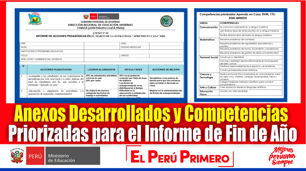 IMPORTANTE: Anexos Desarrollados y Competencias Priorizadas para el Informe de Fin del Año Escolar [Descarga aquí][Word]