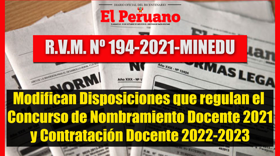 Modifican Disposiciones que regulan el Concurso de Nombramiento Docente 2021 y la Contratación Docente 2022-2023 [R.VM. N°194-2021-MINEDU]