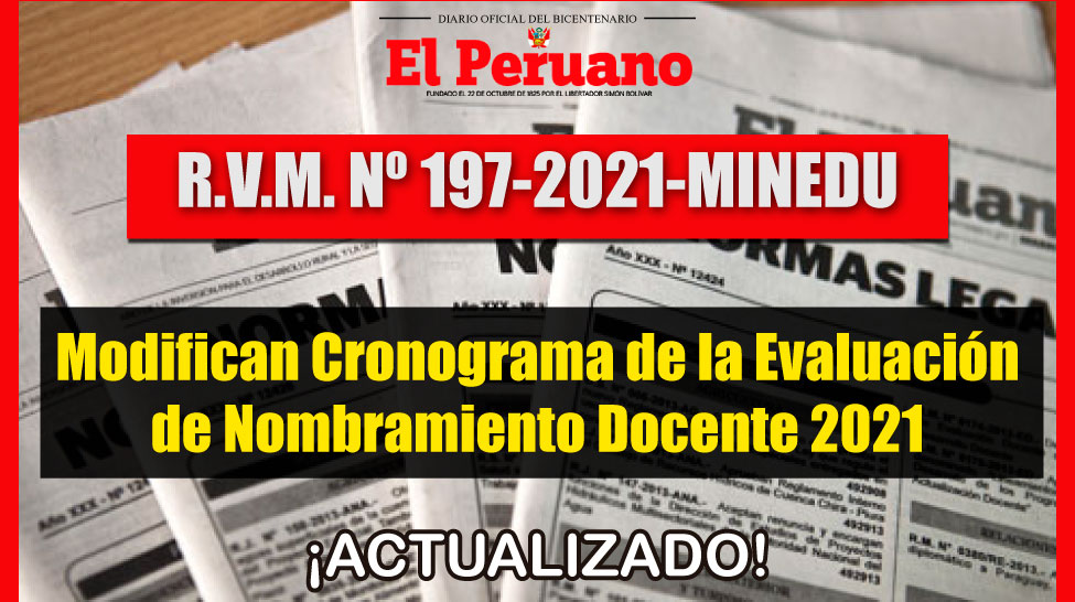 ATENCIÓN: Modifican CRONOGRAMA DE EVALUACIÓN DE NOMBRAMIENTO DOCENTE 2021 [Conócelo aquí][R.VM. N°197-2021-MINEDU]