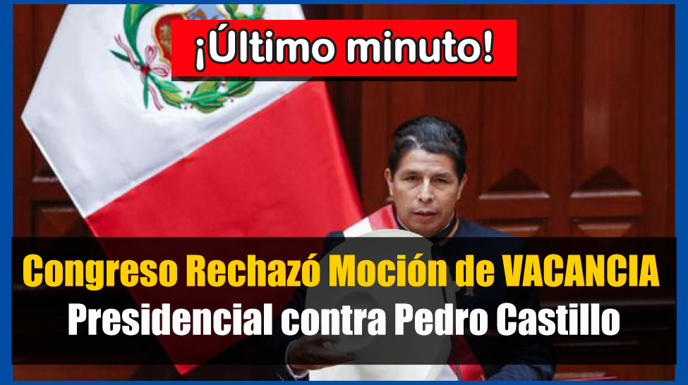 Estimados docentes y amigos visitantes en general, en esta oportunidad les informamos que, el Congreso de la República rechazó admitir la moción de vacancia presidencial presentada contra Pedro Castillo, bajo la causal de incapacidad moral permanente. El resultado de la votación fue: 46 a favor, 76 en contra y 4 en abstención.