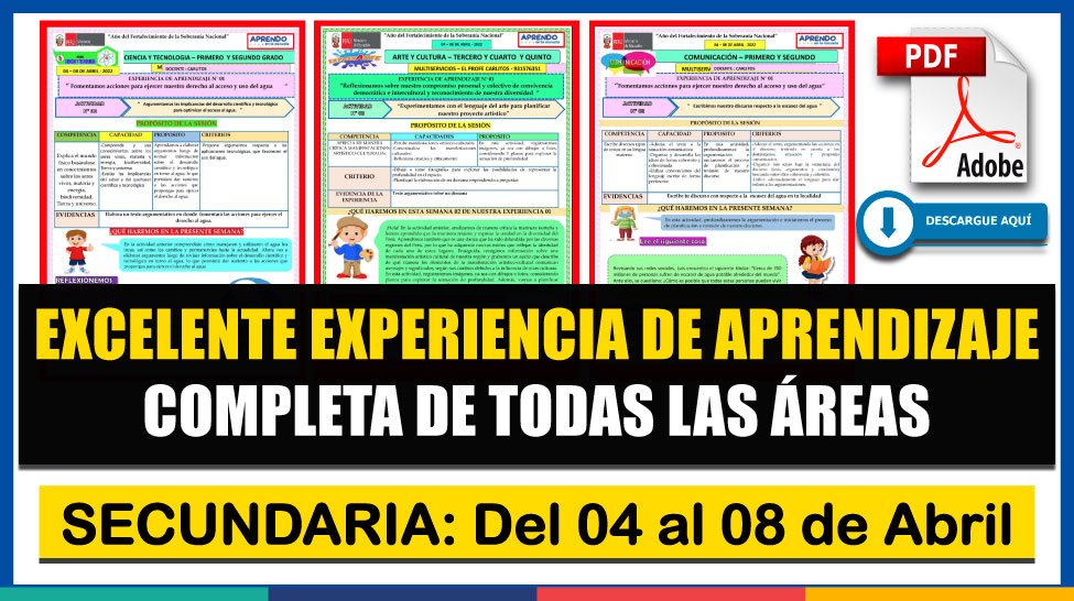 Excelente EXPERIENCIA DE APRENDIZAJE COMPLETA de todas las Áreas para Nivel SECUNDARIA – Del 04 al 08 de Abril [Conócelo aquí]