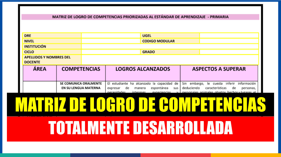 Estimados docentes y amigos visitantes en general, en esta oportunidad tenemos el agrado de compartir con cada uno de ustedes una excelente matriz de logro de competencias priorizadas al estándar de aprendizaje para nivel primaria, totalmente desarrollada, esperando como siempre sea de gran ayuda para todos,