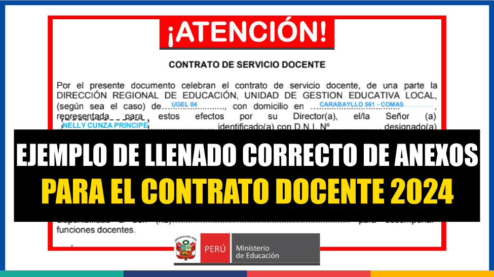 IMPORTANTE: Ejemplo de Llenado Correcto de Anexos para el Contrato Docente 2024 – Referencial [Conócelo aquí]