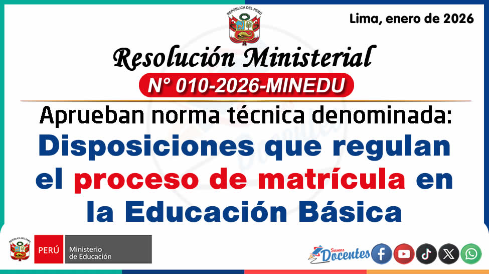RM 010-2026-MINEDU: Disposiciones que regulan el proceso de matrícula en la Educación Básica