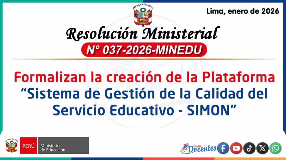 Resolución Ministerial N° 048-2026-MINEDU | Formalizan la creación de la Plataforma “Sistema de Gestión de la Calidad del Servicio Educativo – SIMON”